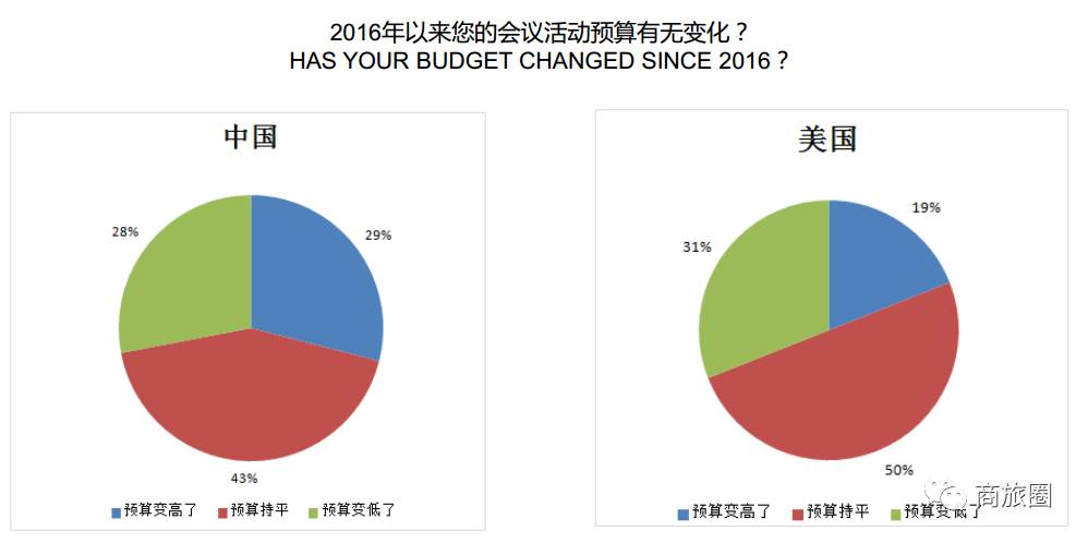 对比中美两地数据发现,29%的中国会议买家有预算增加的趋势,而美国仅有19%的活动预算有增长。