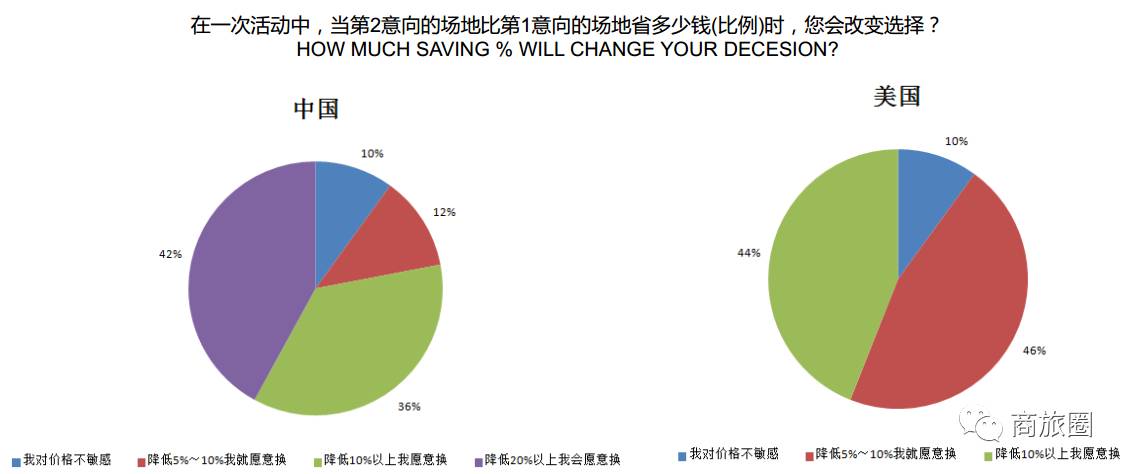 中国会议买家在面对第二意向酒店降价10%以内时,并不容易动心;而美国的Planner会更有意愿因为5%的节省而改变决策。