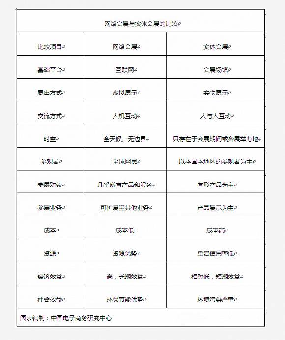 而随着互联网和移动互联网的大潮来临,每一个传统行业都将被改写,会展业也不例外,基于“互联网+会展”诞生的网络会展正极大的助力会展行业经济提速。网络具有的高效性、普及性,虚拟性和强大的信息集散功能使得互联网+会展的网络会展具有虚拟性、开放性、通用性和可扩展性的特征。与传统的实物会展相比,网络会展在时空、资源、成本、效益等方面有着明显的优势。近年来,原本“扎根”网上的电子商务服务企业纷纷开始涉水线下会展,借助“线上为主+线下为辅”的模式帮助传统企业拓展新的发展空间。其中以线上“虚拟展会”加线下“面对面交易会”的虚实互补组合方式,俨然成了电子商务巨头们觊觎的一大热点。
