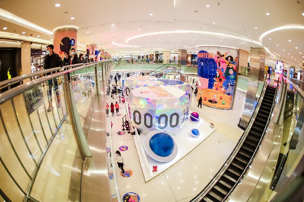 在童真境界,充满着小朋友喜爱的元素,大型牛牛公仔、跷跷板、哈哈镜和通过触摸展现不同图案的像素墙……大朋友也会在这个空间里找到儿时的旧时光。走进当下之光,空间里有着荧光闪烁,可以照亮脚下的位置,好似站在当下生活的中心,看着光依次扩散,感受这个由光点亮的治愈世界。在未来诉语空间能听到这个宇宙中各种熟悉又未知的声音,感觉像是脱离了现实,在聆听、想象未来。