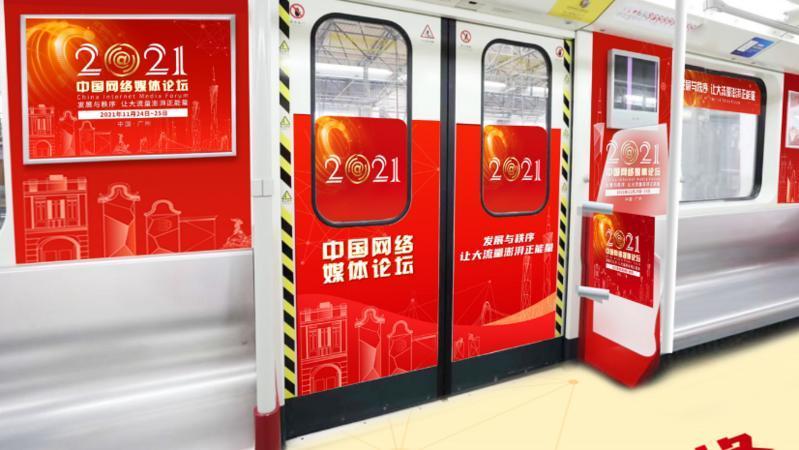 2021中国网络媒体论坛将于11月24日至25日在广州举办。论坛召开前夕,今日,广州地铁8号线推出了论坛主题列车。该主题列车以庆祝建党100周年贯穿全年的红色为主基调,将本届论坛5个平行论坛的主题“传播:塑造价值”“创新:技术赋能”“发展:行稳致远”“责任:共治共享”以及“大湾区:一网相联”融入车厢设计。主题列车将上线运营一个月。