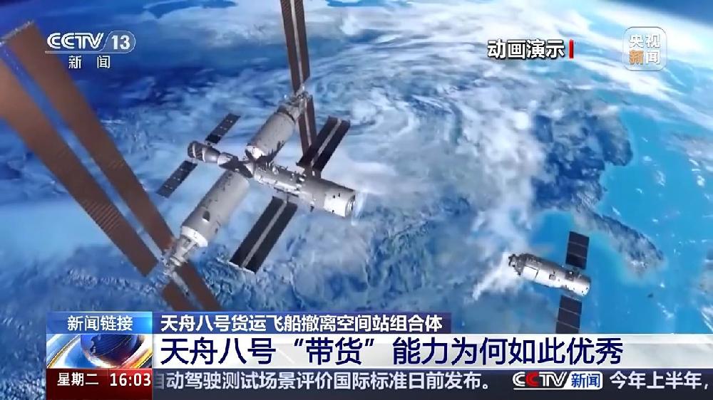 中国航天科技集团 冯永:天舟八号货运飞船相对于天舟七号在发射之前装货的能力较以前有很大的提升,那么主要是为了运送一些时效性很强的货物,为咱们空间站在轨进行科学实验提供了一个很大的技术支撑。比如说一些生物制剂、细胞装置培养等等这样的一些科学项目有很大的一个帮助。