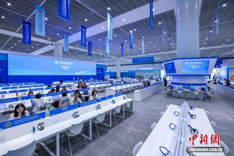 8月28日,天津,2025年上海合作组织峰会新闻中心正式开放。峰会新闻中心分为综合服务区、媒体公共工作区、媒体专用工作区、新闻发布区、科技文化互动展示区等多个功能区,为注册中外记者提供广播电视、新闻发布、峰会资讯等各项服务。2025年上海合作组织峰会将于8月31日至9月1日在天津举行。