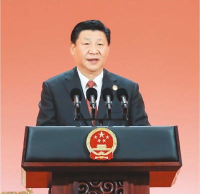 11月4日晚,国家主席习近平和夫人彭丽媛在上海举行宴会,欢迎出席首届中国国际进口博览会的各国贵宾。图为习近平发表致辞。 新华社记者 谢环驰摄