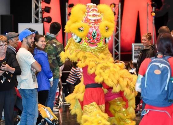 3月9日,在位于新西兰惠灵顿的新西兰国家博物馆,舞狮表演者与现场观众互动。 伴随着喧天的锣鼓声,“中国舞台日”9日在新西兰首都惠灵顿国家博物馆拉开帷幕。“中国舞台日”是新西兰国家博物馆为“2019中新旅游年”举办的活动,新西兰中国文化中心应邀选送了丰富多彩的文艺表演。 新华社记者 郭磊 摄