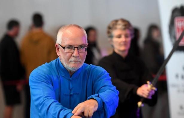3月9日,在位于新西兰惠灵顿的新西兰国家博物馆,中国文化中心太极班的成员表演太极剑。 伴随着喧天的锣鼓声,“中国舞台日”9日在新西兰首都惠灵顿国家博物馆拉开帷幕。“中国舞台日”是新西兰国家博物馆为“2019中新旅游年”举办的活动,新西兰中国文化中心应邀选送了丰富多彩的文艺表演。 新华社记者 郭磊 摄