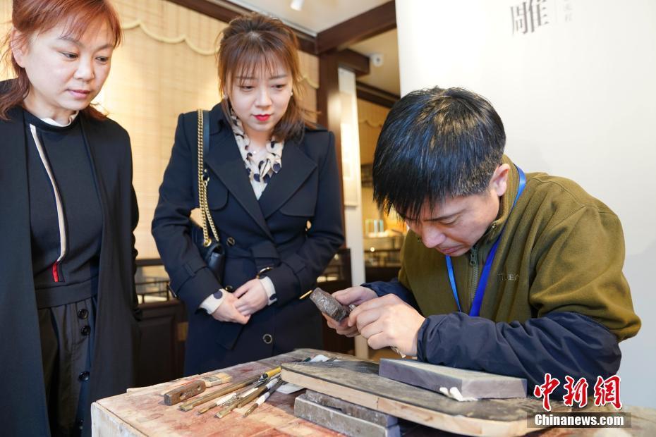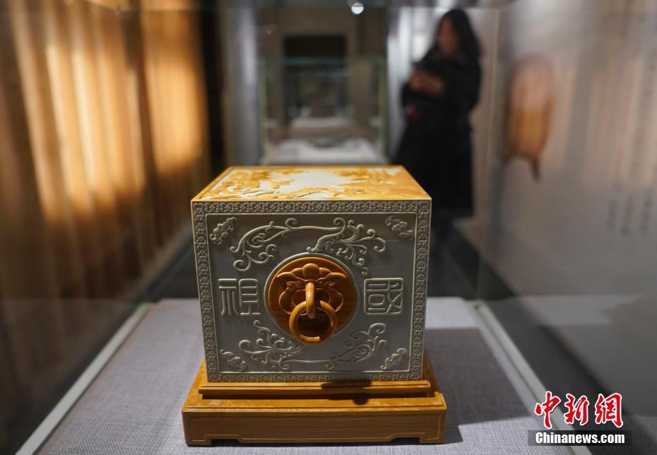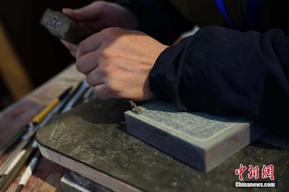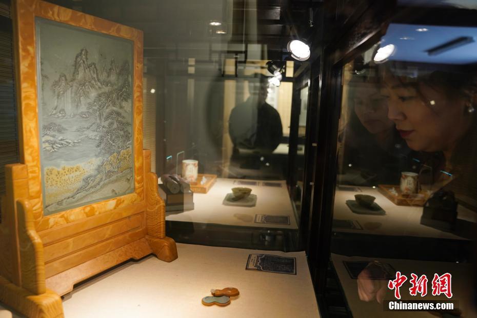 3月21日,“祈福纳祥——辽宁松花石砚制作技艺精品展”在北京恭王府开幕。2014年,松花石砚制作技艺作为辽宁地区珍贵的传统手工技艺类项目,被列入国家级非物质文化遗产代表性项目名录,后又被列入第一批《国家传统工艺振兴目录》。本次展览从松花石砚的传统制作技艺入手,既展出仿制清宫旧藏松花石砚,也有现代创新作品。中新社记者 杜洋 摄