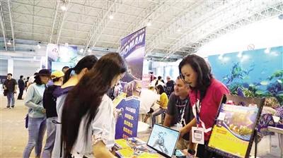 现场吸引了菲律宾、马来西亚、海南蜈支洲岛等潜水资源丰富的旅游区相关机构参展。潜水爱好者可以近距离接触和了解这些知名潜水胜地的相关资讯,比如气候、环境、食宿等。