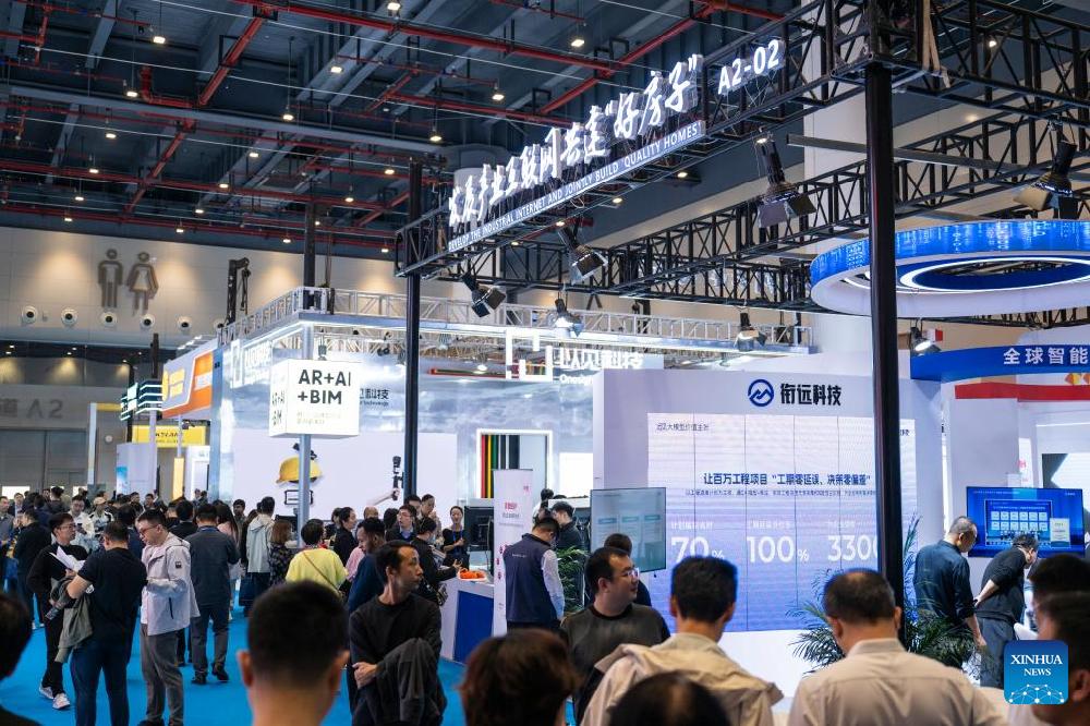 People visit the 2025 International (Wuhan) Intelligent Building Industry Expo at the China Optics Valley Convention and Exhibition Center in Wuhan, central China's Hubei Province, Oct. 31, 2025. With an exhibition area of approximately 20,000 square meters, the expo kicked off here on Friday, drawing exhibitors from over 10 countries and regions. (Xinhua/Wu Zhizun)