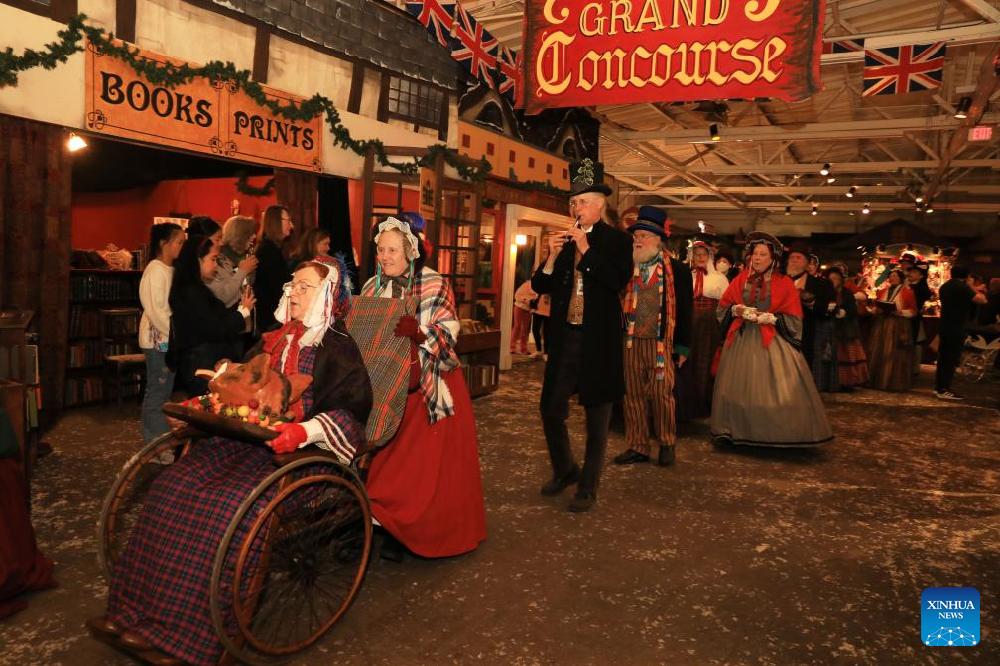 The Great Dickens Christmas Fair, which was first held in 1970, opened here on Saturday. Featuring an immersive adventure into Victorian era, the fair transports visitors in a world created by British novelist Charles Dickens in a festive mood. (Photo by Liu Yilin/Xinhua)