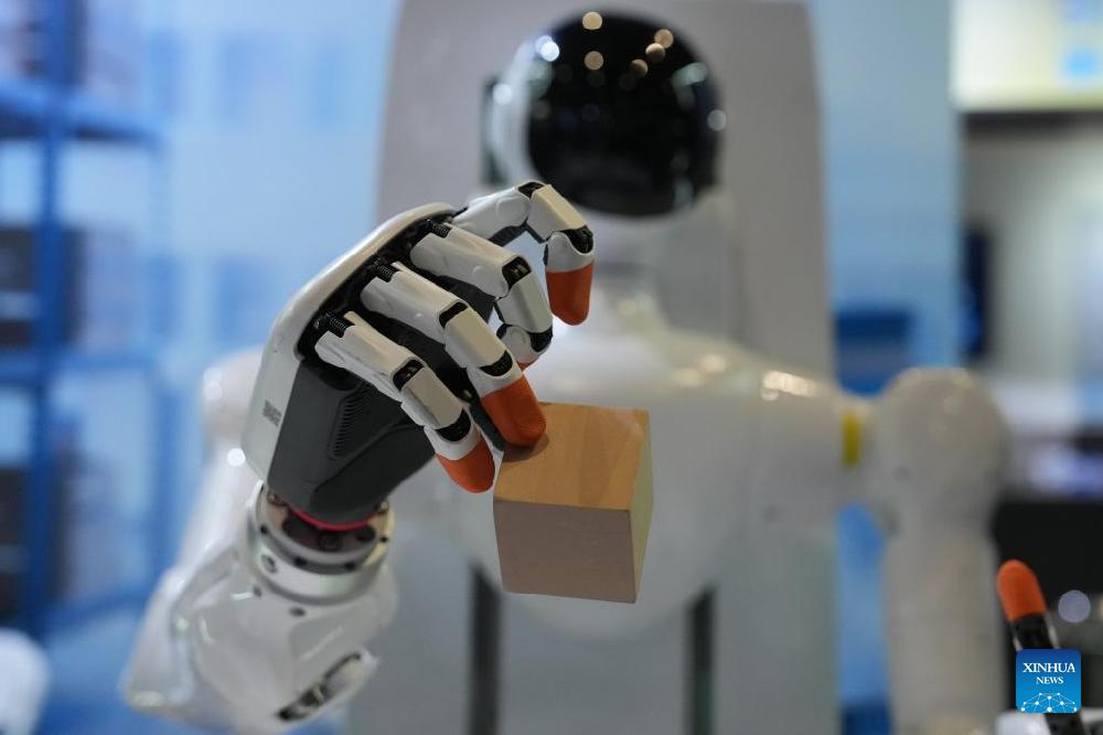 This photo taken on Nov. 6, 2025 shows the demonstration of a smart robotic hand at the 2025 World Internet Conference (2025 WIC) Light of Internet Expo in Wuzhen, east China's Zhejiang Province. The expo kicked off here on Thursday, showcasing more than 1,000 cutting-edge AI technology products from over 600 domestic and overseas enterprises. (Xinhua/Huang Zongzhi)