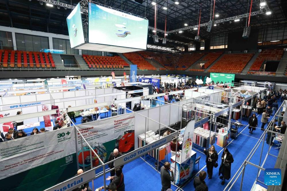 This photo taken on Nov. 13, 2025 shows the international exhibition Kyrgyzstan Expo 2025 held in Bishkek, Kyrgyzstan, Nov. 13, 2025. (Photo by Roman/Xinhua)