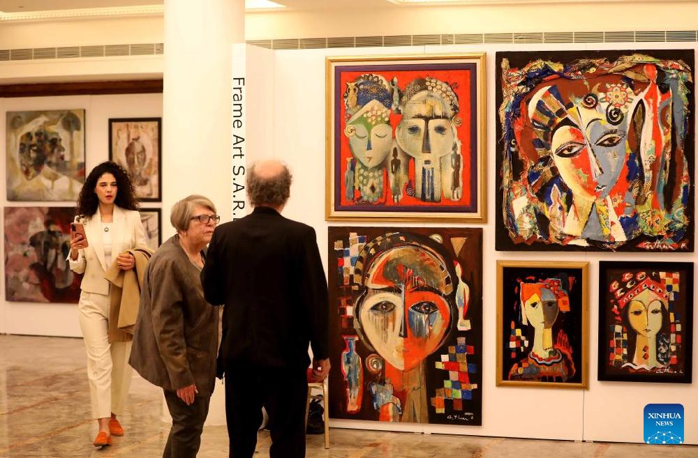 People visit the Arab Art Fair in Beirut, Lebanon, Dec. 4, 2025. The fair offers visitors a unique journey through the colors and stories of contemporary Arab art. (Xinhua/Bilal Jawich)