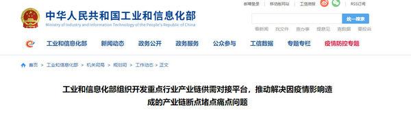 为帮助企业解决因疫情影响造成的产业链断点堵点痛点问题,服务企业供需对接,工业和信息化部组织中国信息通信研究院开发的重点行业产业链供需对接平台(以下简称平台)于4月26日正式上线试运行。平台针对国内外需求不足风险,提供在线展会和电子订货服务。