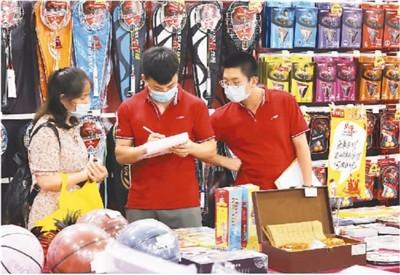 7月11至13日,2020中国义乌文具礼品展览会在浙江义乌国际博览中心举行。展览会设立标准展位2512个,以“订货会+新品发布会+传统展会”模式,推动内外贸发展,同时通过举行网红选品及直播活动,帮助企业更好推广市场。图为7月12日,客商在文具礼品展览会现场采购体育用品。