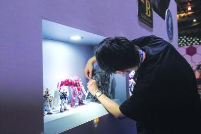 第十六届中国国际动漫游戏博览会今开幕,工作人员正加紧布展。 记者 叶辰亮摄