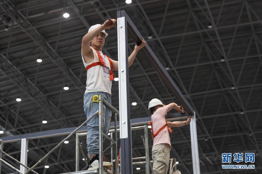 4月27日,工人在位于海口的海南国际会展中心为消博会搭建布展。 当日,首届中国国际消费品博览会的搭建布展工作正式开始。消博会开幕在即,在举办地海南国际会展中心,展馆施工人员在进行从展台搭建到完善观展标识等的布展准备工作。此次展览总面积约8万平方米。