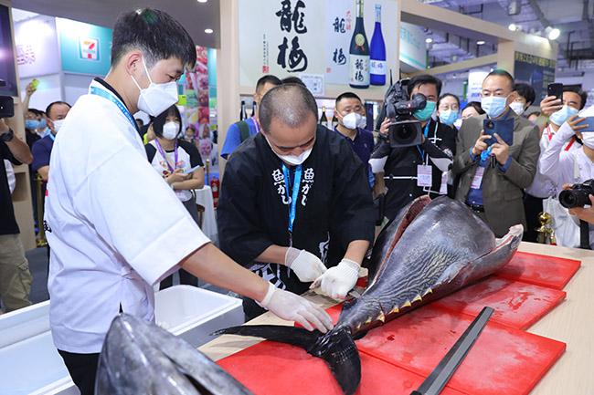 博览会现场弥漫着浓浓的日式风情,日本清酒、工艺品、化妆品、医养产品、智能家电等统统来到济南,好吃好玩好看好用的日本进口商品一网打尽,让广大消费者在家门口,就能享受到与东京、大阪同样的消费和服务。欧姆龙的制氧机、蓝鳍金枪鱼、镰田诚化妆品、“和风”酒套等日本特色产品大受欢迎。得益于山东省RCEP“6小时通关”和畅通中日“海上高速公路”的政策,实现了日本鲜活金枪鱼的快速通关,日本知名企业住友商事首次将大分县的冰鲜蓝鳍金枪鱼带到山东,金枪鱼解体秀让现场观众大饱眼福。今年年初RCEP正式生效,为山东以及济南深化对日合作带来了新的重大机遇。本届博览会充分发挥作为与日本国际采购、产业技术、投资促进和人文交流的合作新平台作用。