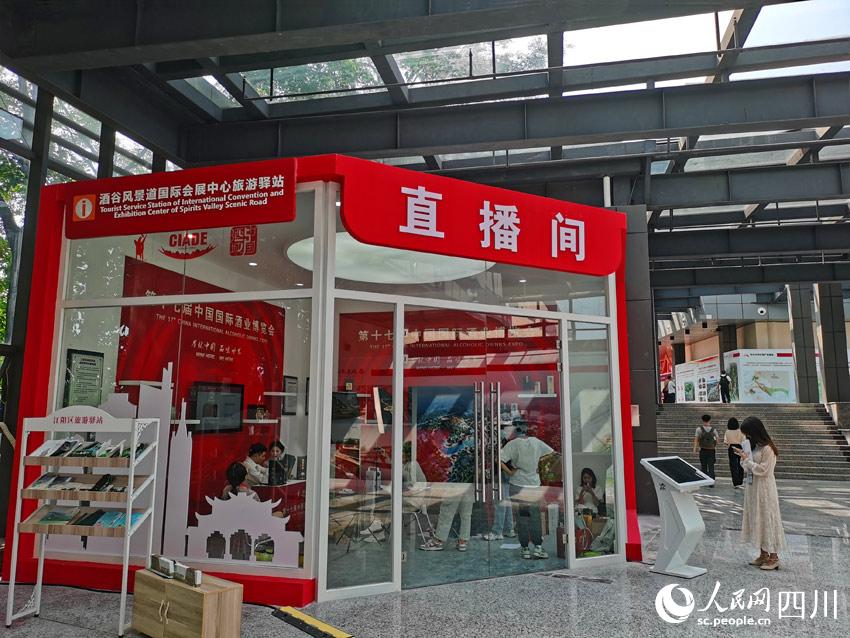 展馆里开起了卖酒带货的直播间。人民网 刘海天摄