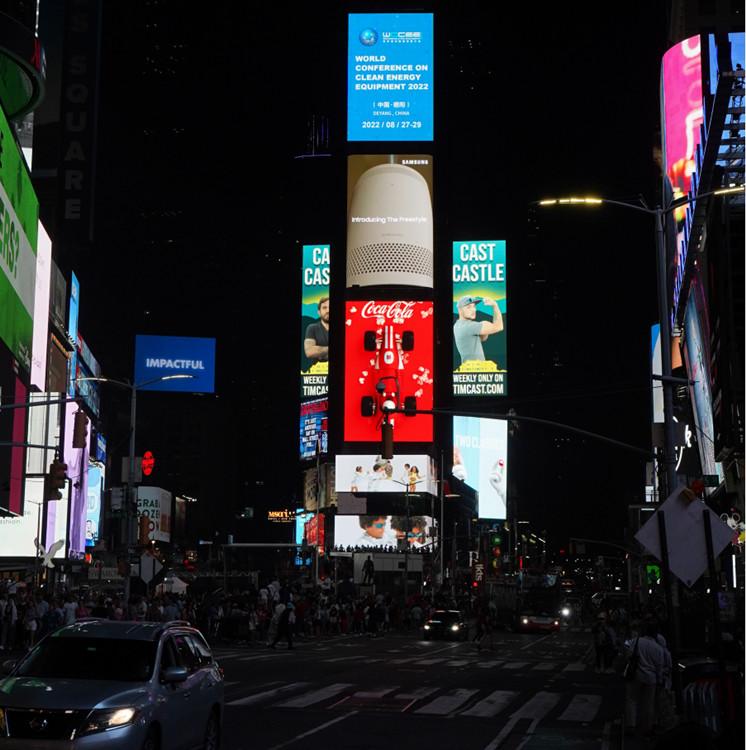 美国纽约时报广场显示屏推广2022世界清洁能源装备大会。德阳市委宣传部供图