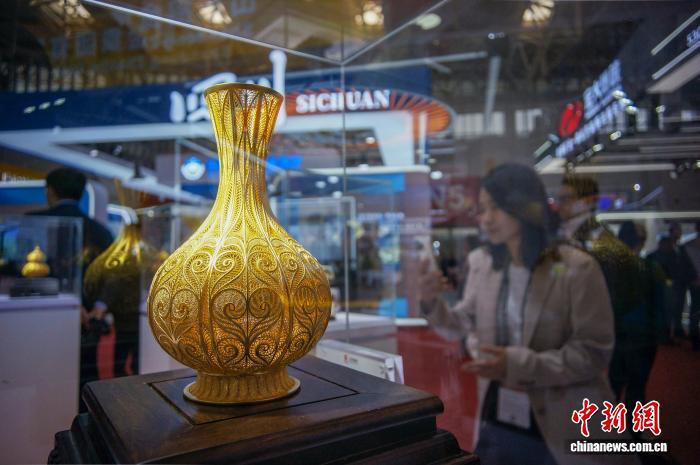 10月23日,天津,与会嘉宾参观金银工艺品。当日,2025第二十七届中国国际矿业大会在天津梅江会展中心举行。大会以“互融互通,共建共享”为主题,设置了智能矿山(智能制造)、地质调查/矿业勘探设备、重型机械设备及配套零配件等多个展区,涵盖矿业全产业链条。