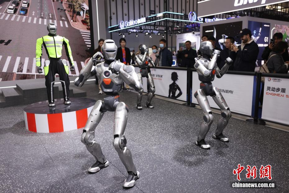 11月27日,2025世界智能制造博览会在南京开展,设置了机器人、智能工厂、工业软件与系统解决方案、智能装备四大展馆,琳琅满目的工业生产机器人、生活服务型机器人“扎堆”亮相,各展绝活。图为展示的机器人表演“功夫”。