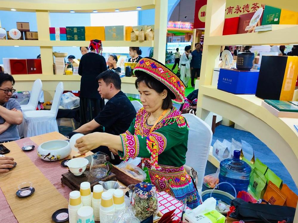 走进云南省州市名茶馆的麻栗坡县展区,老山烤茶、古树红茶、高山绿茶等特色产品琳琅满目,麻栗坡县家茗茶叶种植专业合作社负责人徐玉艳正在展位前忙着接待客商。