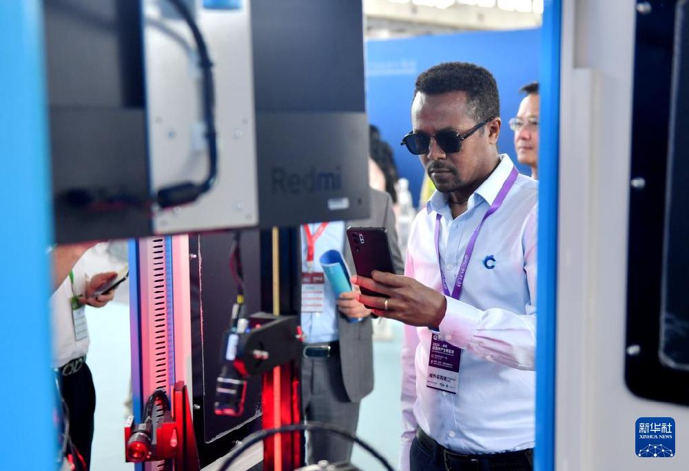 4月21日,国外采购商在2025永年紧固件产业博览会上参观。