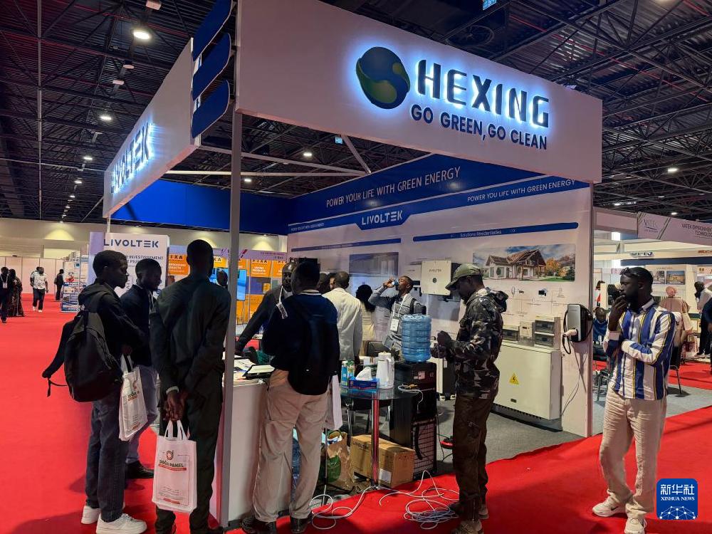 在能源展区,杭州海兴电力科技股份有限公司旗下新能源品牌利沃得的展位前人头攒动。塞内加尔泽尼尔能源公司市场部经理盖伊·迪耶纳巴正仔细查验逆变器的参数。
