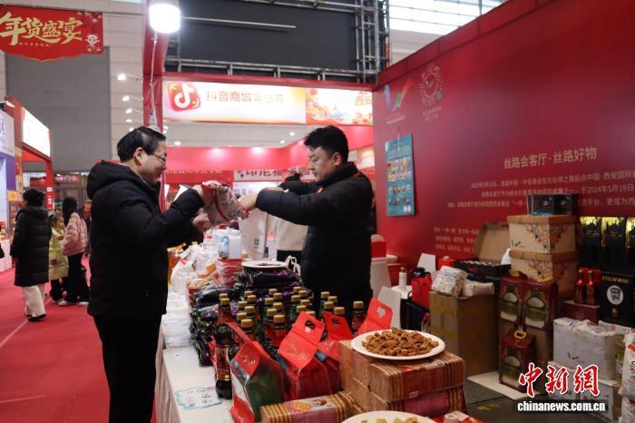 中新社西安2月10日电 (李一璠)10日是中国北方小年,古城西安年味正浓。西安国际会展中心内,第21届西安年货会人气火爆,超600个展位前,采购年货的市民游客络绎不绝。