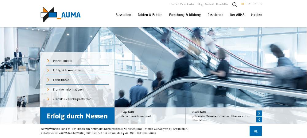 AUMA(Association of the German Trade Fair Industry),即德国经济展览和博览会委员会简称,在德国经济展览和博览会委员会在联邦经济与技术部和消费者保护、营养与农业部协助下,为德国官方参与国外展会计划做筹划准备工作的组织。在该筹划准备工作范围内,德国政府为德国企业去国外展会共同参展提供可观的经济支持,同时也为德国企业在国外自我介绍提供这种支持。该范围内的商业与政策的利益由一个负责国外参展特别小组来协调。侧重出口的经济团体的专家和部委的专家定期在小组举行会晤。德国经济展览和博览会委员会的会员是: 德国经济的优秀团体(工业、商业和手工业);对参展有兴趣的展商和采购商以及展会搭建公司; 德国展会组织人以及实施国外参展计划的企业。